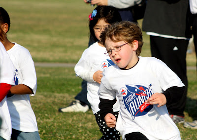 fun. And let me tell you, it was lots and lots of fun...except for the calling around and begging for money part, of course. The idea is that the kid calls his friend and family and asks them to sponsor him as he runs laps around a field. All the money goes directly to the school and is used to purchase technology products for the classroom. Great idea, right? Except that getting your kindergartener to make the pitch over the phone is...well...it's like trying to get a 6-year-old to do anything that requires sitting still and speaking intelligibly. We managed to muddle through that part.